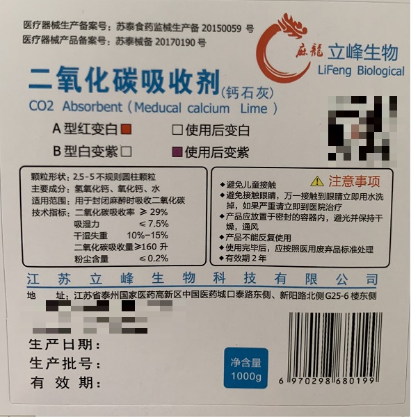 二氧化碳吸收剂(钙石灰500g)红色 麻醉科