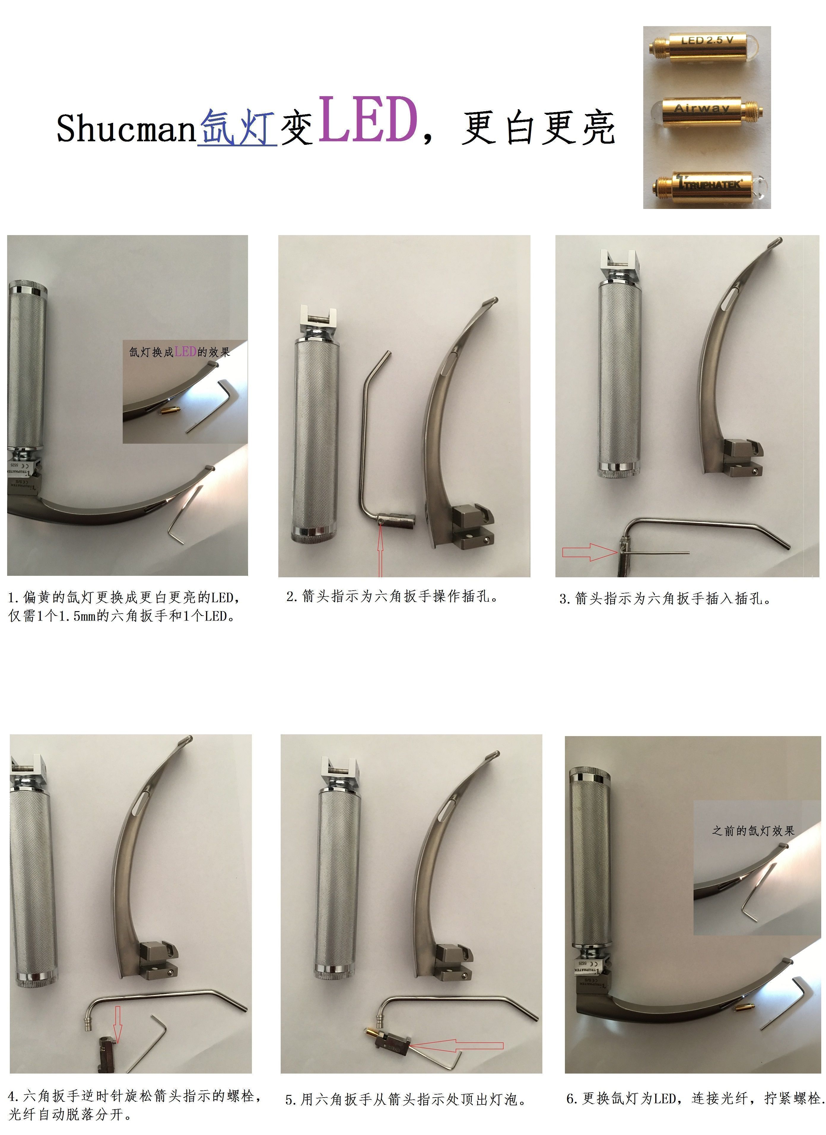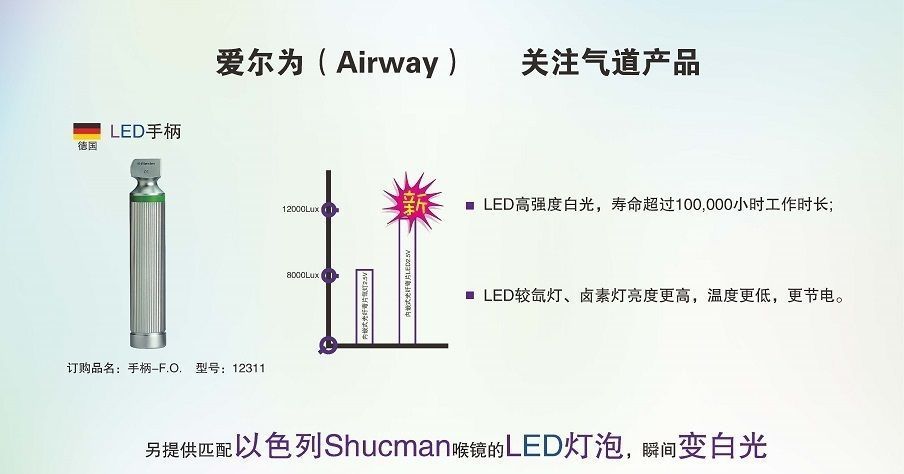 升级以色列Shucman氙灯喉镜为Shucman LED喉镜