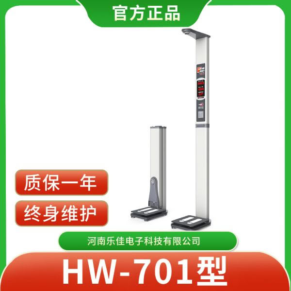 HW-700型身高体重测量仪,全自动身高、体重、体型指数BMI;同步测量数据清晰语音播报;智能LCD数码显示; 内置热敏打印机,高速热敏打印测量报告,换纸方便,易操作,方便实用。(选配) 各分项检测功能技术指标: ▲身高测量方式: 身高采用超声波测距,原装探头实现温差补偿,不受外界环境影响测量精度,测量准确; 体重测量方式:中国航空工业公司高精度平衡梁式压力传感器测量体重,灵敏度高,测量准确快速; 体型:国际通用体格指数(BMI)自动计算 显示方式:主显示屏LCD显示,显示屏能同时显示身高、体重、BMI体格指数、体型(偏瘦、正常、偏胖、肥胖),待机状态下显示当前日期、时间,室内环境温度 测量范围:身高测量范围:0-200cm 分度值0.1cm 体重测量范围:1-200kg 分度值0.1kg 测量速度:480次/小时 ????????????????????????????????????????????? 数据传输:标准RS232通讯接口可对接单位体检系统,测量数据上传,传输数据性能稳定,免费提供串口协议。 整机冷板冲压成型,表面静电喷塑,抗氧化,防磨损,底盘非铸铁,结实耐用。 电源电压:交流(照明电):110V-240V,50HZ 直流(蓄电池):12V±10% 功耗:待机时功率:≤8W测量时功率:≤12W 工作环境: 环境温度:-10℃~+40℃ 整机重量:?毛重:25kg ????净重:20kg 外形尺寸:MAX:55(L)×33(W)×230(H)cm 附件: 使用说明书、电源线、数据线、保修卡、合格证、工具包等 更多 身高体重一体机 价格、说明、厂家,请关注医贸天下医疗器械网