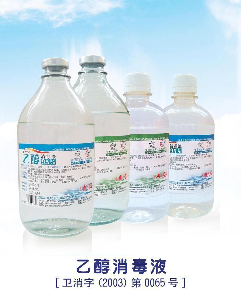 赣卫消证字:(2010)第0022号规格:75%乙醇:500ml×20瓶/件(玻璃瓶)75%乙醇:100ml×20瓶/件75%乙醇:500ml×30瓶/件75%乙醇:100ml×160瓶/件95%乙醇:500ml×20瓶/件(玻璃瓶)95%乙醇:500ml×30瓶/件本品是以乙醇为主要成份的消毒液,可杀灭肠道致病菌,化脓性球菌和医院感染常见细菌。适用于一般物体表面的消毒。 更多 乙醇消毒液 价格、说明、厂家,请关注医贸天下医疗器械网