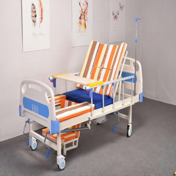 手动医疗床A手动医疗床的产品特点和适用范围: 手动医疗床这款床搭载了整体冲孔的双摇床面、ABS双摇摇柄、注塑材质的四小片ABS护栏、注塑ABS床头、不锈钢输液架和ABS静音脚轮等。 手动医疗床产品特点: 1、整体用料更足,重量增加,承重量翻倍,可承重200kg 2、起背面圆角贴心设计,美观,整体性增强; 3、铝合金加高折叠护栏,采用优质铁制连接件,不断满足客户更高的要求; 4、背部、腿部以及整体升降采用摆杆滚轮结构,隐藏式设计,轻便安静,寿命延长; 5、床腿采用M型连接件,实现无缝连接,更流畅更稳固; 6、开设独立喷涂工序车间,保证喷涂质量,床面无焊接点,光滑整齐; 7、库房地面铺设地毯,确保存放及运输产品时喷塑面无划痕; 8、产品包装升级,每张床配备独立的配件工具包,设计更加人性化; 各大医院、医学院、诊所、及私人护理等。 手动医疗床适用范围: 多功能护理床适用范围:医院使用主要用于病人的治疗和康复。对行动不便的老人、脑血管不好、中风老人、行动迟缓,腿脚不灵、长期卧床等人群有很好的辅助治疗作用 更多 手动医疗床A手动医疗床 价格、说明、厂家,请关注医贸天下医疗器械网