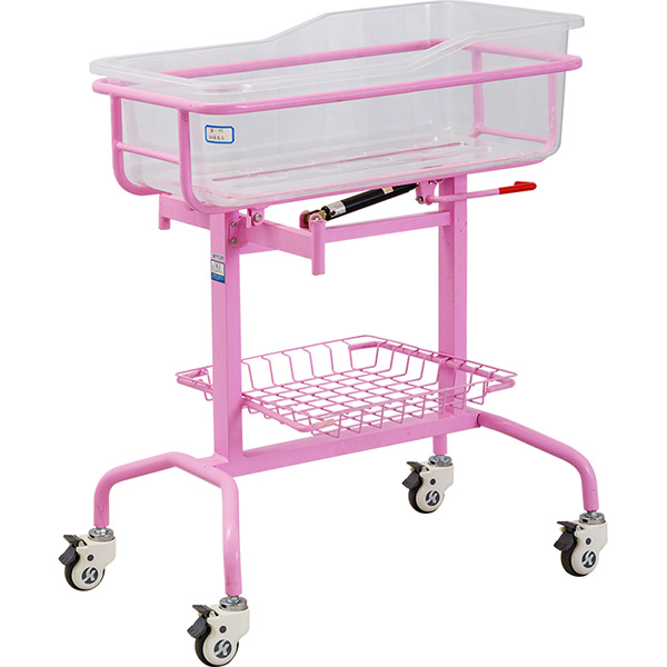 一、产品名称 新生婴儿车/手动病床 二、产品参数 规格:805±10*525±10*970±10mm。 三、产品功能 功能:前倾18°,1个气弹簧助力升降。 四、产品优势 1、整床采用优质304不锈钢材质,经智能机器人焊接而成,焊接无盲点、无虚焊,不脱焊,表面光滑、无毛刺,美观牢固、安全可靠,承载能力更佳。颜色为粉红色,简洁大方,柔和温馨,带杂物篮。 2、婴儿盆采用亚克力材质,一次性注塑成型,质地轻巧,外形高雅、坚固、耐老化、耐褪色、耐高温、抗酸碱腐蚀且整体通透性更强,方便清洁。全透明设计,方便360度观察婴儿状态。 采用3寸包罩轮,带独立刹车,可随时随地在任意状态下制动,新型防缠绕全密封自润滑罩壳设计,内装精密轴承,防水、防尘,运动时无噪音、不缠绕,外型美观、锁止可靠、转动灵活、坚固耐用。 更多 X01-5 手动病床 价格、说明、厂家,请关注医贸天下医疗器械网
