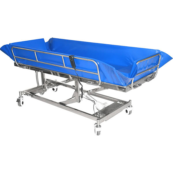 一、产品名称 电动洗澡床 二、产品参数 规格:1800-650-500-730mm。 三、产品功能 功能:整体升降230mm,方便调整到适合护理人员的高度。 四、产品优势 1、全不锈钢床头尾、护栏,永不生锈,强度高,经久耐用,表面电泳着色,涂层均匀、附着力好、耐腐蚀性强、外观精美。能直接由睡床转移洗澡者前往沐浴;易于洗澡者移动搬运。 2、床架、连接件、紧固件、旋转件均采用高冷板、冷管、优质304不锈钢材质,经智能机器人焊接而成,焊接无盲点、无虚焊,不脱焊,表面光滑、无毛刺,美观牢固、安全可靠,承载能力更佳。整体表面户外防水烤漆处理。 3、浴槽采用高韧性环保皮划艇料制成,柔软舒适,耐高温、严寒,不易变型,不易老化;可拆下清洁消毒。床底有一大一小两个网篮,可以防止换洗的衣物。 4、脚轮:采用5英寸豪华包罩静音脚轮,带独立刹车,可随时随地在任意状态下制动,新型防缠绕全密封自润滑罩壳设计,内装精密轴承,防水、防尘,运动时无噪音、不缠绕,外型美观、锁止可靠、转动灵活、坚固耐用。 5、采用国际先进的直流推杆安全电机,拥有多项国际权威安全认证,电机性能卓越,品质优异,运行稳定可靠,安静无噪音,抗电磁干扰能力强,使用寿命长;配优质原装蓄电池,采用不间断电源系统解决方案,平时使用市电时自动为蓄电池充电,停电时自动供电,始终保持病床的正常运行,不影响任何功能。配手持式控制器,通过触摸式按键实现各项控制功能,有清晰易懂的操作使用标识,可灵活调节患者身体各部位的高度和倾斜角度。 更多 SKD-C 电动床 Z0n 价格、说明、厂家,请关注医贸天下医疗器械网