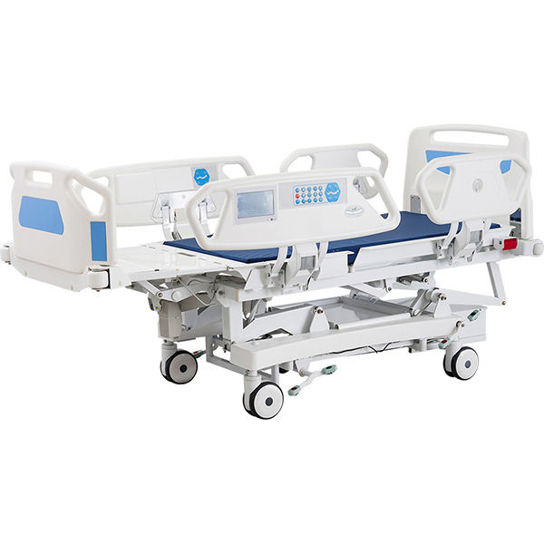 一、产品名称 电动病床二、产品参数 规格:整床规格:2290*1020*500-1000mm,床板规格:1830-2030*820mm三、产品功能 功能:背部抬起75°±10°,腿部抬起18°±10°,整体升降500mm,前后倾12°,电子秤重,快速放平,腿板延伸200mm,心脏椅位四、产品优势 1、床头尾:采用全新高强度ABS工程塑料一次性注塑成型,抗冲击性强,耐磨、耐腐蚀、阻燃,性能稳定可靠,床头床尾架有对称式自锁定装置,可以方便的拆卸或锁定;床体四周带有可拆卸防撞轮,防止不小心碰撞导致人体受伤或损坏病床。2、护栏:采用4片ABS护栏,全新高强度ABS工程塑料一次性注塑成型,有自锁定装置,可将护栏收纳到床板下面,不占用空间,配有优质气弹簧缓冲护栏升降速度,防止护栏快速倒下伤人或碰撞床体,保证安全,延长使用寿命。护栏配角度显示仪,能实时直观的动态显示当前背部床板和腿部床板的升降角度,方便医护人员准确控制病床姿态,以便于进行治疗操作。配有液晶显示屏,病床的各项功能和姿态通过液晶屏以图文方式动态显示,清晰明白,一目了然。3、床板:采用厚度为1.2mm的优质冷轧钢板,经液压机及床板专用模具一次冲压成型凹透式防滑透气床板,床板下再用优质冷轧钢管加固,床板更坚固、强度极高,承载能力更佳;进口智能机器人焊接,精度高,表面无焊点,光洁亮丽,床尾配床垫止滑架,防止床垫滑动。4、床框架:由中控底盘架、升降机构和床框组成,中控底盘架采用60×30×1.5mm优质冷轧钢管,虎爪型稳定结构,床框采用50×30×1.5mm优质冷轧钢管,进口智能机器人焊接,精度高,表面光滑,无虚焊,不脱焊,床框头部和腿部左右两侧预留4个输液架插座,内镶钢制套管,床框底部左右两侧配4个引流钩。5、脚轮:采用6英寸中控双面轮四只,内装精密封闭式双面轴承,承重量高,运行平稳,配中控刹车系统,通过中控踏板的踩踏与提升实现制动控制功能,一脚制动及解刹车,提升病床控制的灵活性和方便性,脚轮运动时静音效果好,适合病床需要安静、安全的环境使用;封闭性好,能防止杂物进入,高耐磨,有效延长脚轮的使用寿命。6、采用国际先进的安全电机,拥有多项国际权威安全认证,电机性能卓越,品质优异,运行稳定可靠,安静无噪音,抗电磁干扰能力强,使用寿命长;配优质原装蓄电池,采用不间断电源系统解决方案,平时使用市电时自动为蓄电池充电,停电时自动供电,始终保持病床的正常运行,不影响任何功能。配手持式控制器,通过触摸式按键实现各项控制功能,有清晰易懂的操作使用标识,可灵活调节患者身体各部位的高度和倾斜角度。 更多 SKD-C 电动床 X9x8s-cz 价格、说明、厂家,请关注医贸天下医疗器械网