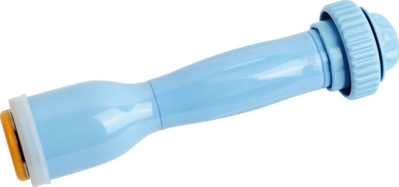 5.?对准位置将龟头套的杆插入壳体内中心孔达尾部,同时右手往里按下微调螺母,听到咔嗒声,即可旋紧微调螺母。