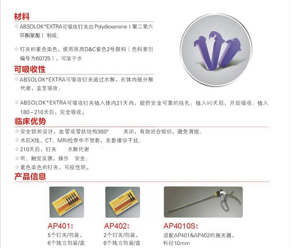 产品名称:美国强生 ETHICON结扎钉夹AP402