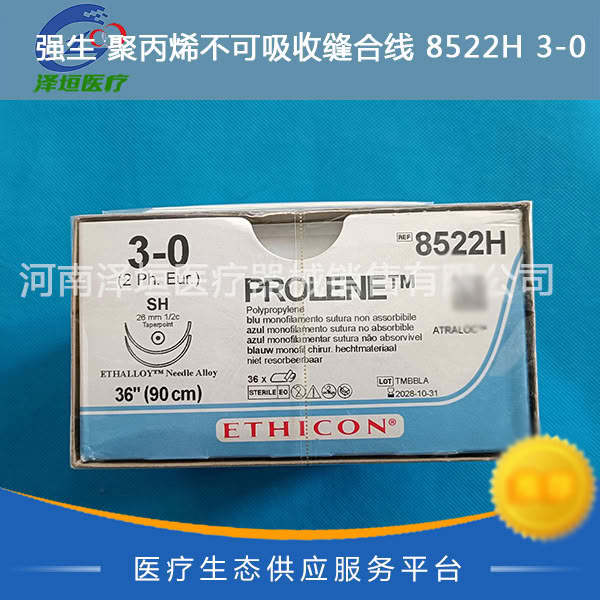 产品名称:强生 聚丙烯不可吸收缝合线 8522H 3-0 普理灵 PROLEN  非吸收性 单股