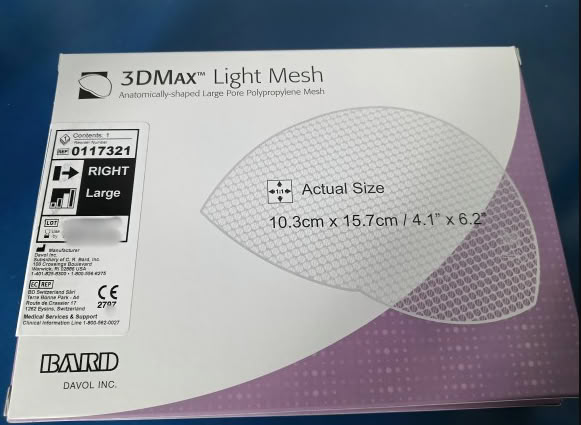 产品名称:BARD巴德0117321右疝修补补片3d补片网塞3DMAX