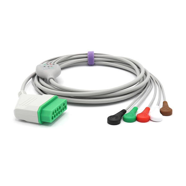 产品名称:兼容光电BSM2300/5100/9510/9800一体化5导 扣式 美标心电导联线