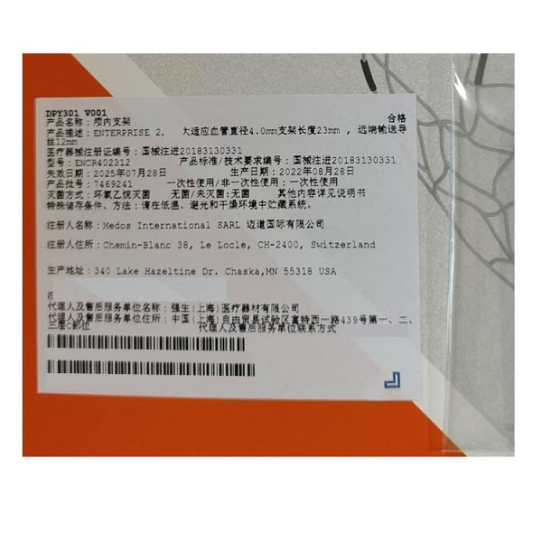 产品名称:柯德曼Cordis康蒂思 强生颅内支架系统 强生颅内血管支架