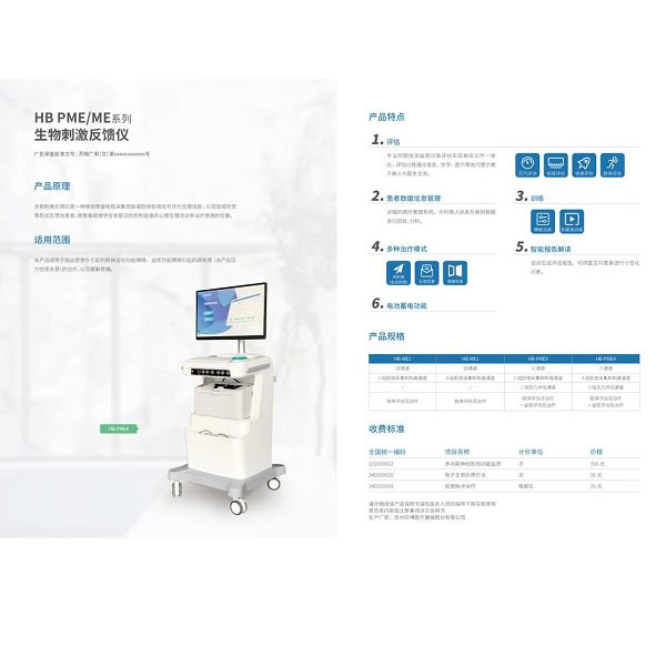 HB-PME3技术参数 ? 1.?★设备治疗和评估通道数量3个,其中,电刺激和生物反馈同步治疗通道数量2个,压力评估通道1个。 2.?治疗模式至少包括神经肌肉电刺激、反馈刺激、Kegel模板训练、多媒体场景动画生物反馈训练。 3.?2通道神经肌肉电刺激通道,可同时多部位或多患者同时治疗。 4.?独立的治疗通道,可独立或同步调节刺激强度,互不干扰,盆底治疗与产后康复可同时进行。 5.?★具有快速肌电评估、标准肌电评估和压力评估等三种评估方式,波形采集界面灵敏度和扫描速度可根据需要进行调节,滤除工频和通频带外的信号干扰,对盆腔Ⅰ类肌Ⅱ类肌的肌张力、肌耐力、肌肉协调性进行快速筛查检测,并自动计算检测项单项和总评估得分。 6.?评估结果输出标准评估报告,包括多种评估指标数值、参考范围、盆底肌电图以及腹肌参与度、报告解读。 7.?EMG检测范围:5-100000?V。 8.?系统噪声:≤1?V。 9.?通频带:20Hz~500Hz(-3dB)。 10.?差模输入阻抗:大于10MΩ。 11.?共模抑制比:大于120dB。 12.?至少包含单向波、双向波、交互波三种电刺激输出波形。电刺激脉宽:50-1000us可调。 13.?电刺激频率:1-250HZ可调;? 14.?电刺激强度范围:0-100mA可调。 15.?★具有生物反馈、神经肌肉电刺激、生物反馈加电刺激组合、场景动画生物反馈、触发电刺激治疗模式。 16.?★可治疗肌肉类型:包括浅表肌纤维、横纹肌、子宫、淋巴管、上肢、下肢。 17.?可导入几十种常用盆底康复临床治疗方案。 18.?生物反馈Kegel训练模板设计功能,治疗师可根据临床需要自主进行训练模板的设计编辑。 19.?具有多种多媒体场景训练动画模板,训练界面可实时观看动态肌电位。 20.?预置多媒体场景动画治疗方案,提高治疗过程趣味性与依从性.患者可直观看到张力下降、肌力提升的肌电位,同时具有训练得分,患者可对康复治疗进行自主评估。 21.?具有多种电刺激波形选择:单面波、双相平衡波和交互波。可自定义编辑电刺激治疗参数和方案,包括刺激波形、输出电流、脉冲宽度、脉冲频率、输出波形的上升下降时间、刺激时间、间隔时间。 22.?所有治疗方案提供禁忌症、电极和传感器的部位示意图,确保操作准确性。 23.?评估、治疗、训练全程语音提示功能,指导患者理解正确的肌肉收缩放松动作,实现准确评估与有效训练和治疗,减少不必要的医护人员干预,减轻工作负担,提高临床效率。 24.?★设备具有快速肌电评估、标准肌电评估、压力评估等多种评估方式,可供医生和患者根据临床需要,灵活选用合适的评估方式。 ? ????????????????????????????????????????????????????????????? ??????????????????????????? ??????????????????????????????????????????????????????????????????????????? ? ? ? 更多 生物刺激反馈仪 价格、说明、厂家,请关注医贸天下医疗器械网