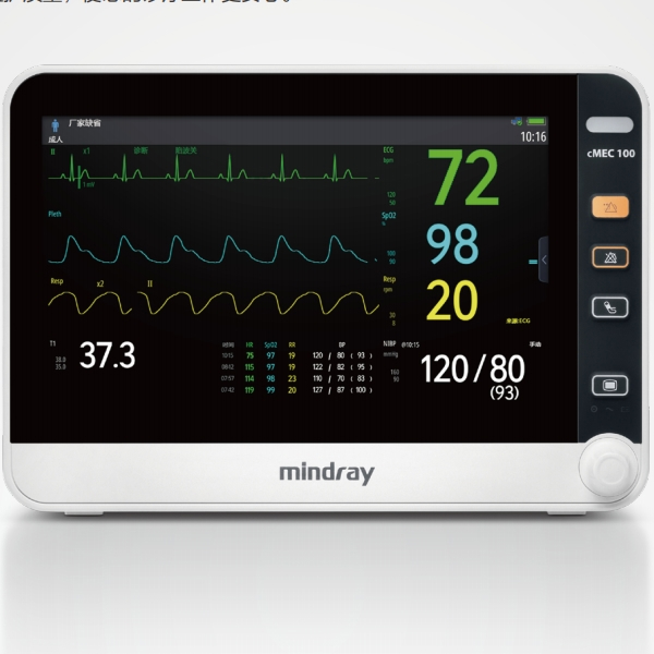 秉承迈瑞在监护临床领域30年的钻研和积累,cMEC系列病人监护仪聚焦临床科室需求,提供精确稳定的基本参 数测量,确保监护质量,使您的诊疗工作更安心。 性能出众 - 迈瑞专利多导心电算法[1],提升测量准确性,减少误报警 - NIBP快速测量技术,特别针对高/低血压患者,减少袖带充气带来的不适 - 迈瑞专利血氧技术[2],提高运动条件下监测准确性和弱灌注下测量灵敏度和准确性 - 超长的数据存储能力,全面回顾病人历史信息,并支持外部USB存储设备 - 12小时超长电池连续工作时间 贴心易用 - 标配10.1寸、12.1寸高清电容触摸屏,支持手势操作切换界面以及屏幕亮度和音量调节 - 扁平式菜单设计,简单易用,自主培训功能引导医护人员快速掌握监护功能操作 - 早期预警评分EWS,格拉斯哥昏迷指数评分GCS和24小时心电概览功能,辅助临床医护人员快速分析患者病情 - 360度报警灯,报警信号全方位可见 - 隐藏把手与轻量化设计,便于携带 - 大容量附件收纳仓,让附件管理简单高效 可靠耐用 - 0~40度的工作温度范围,无惧严酷的低温环境 - 0.75米抗跌落和IPX1防水设计 - 低功耗设计,无风扇,低尘低噪音,省电耐用 - 机器外壳抗老化、变色,耐腐蚀性强 - 原厂附件,采用优质材料和工艺,柔韧可靠 更多 监护仪,病人监护仪,触摸屏监护仪,迈瑞监护仪 价格、说明、厂家,请关注医贸天下医疗器械网
