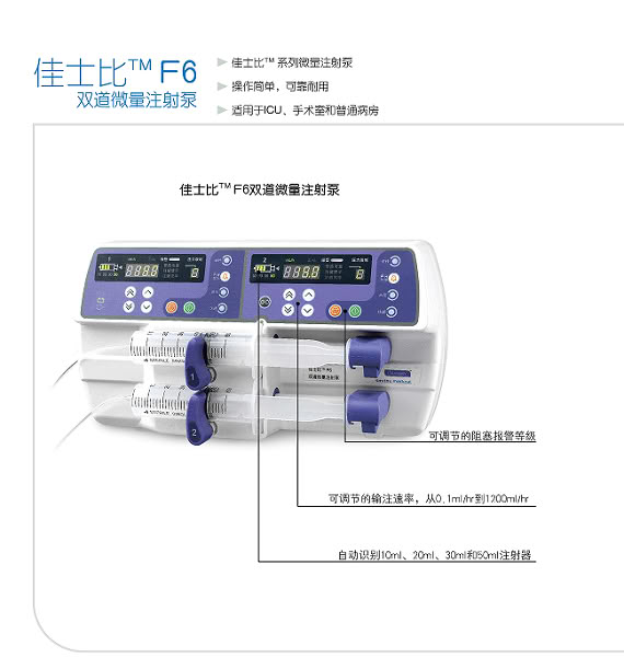 产品名称:佳士比F6双道微量注射泵