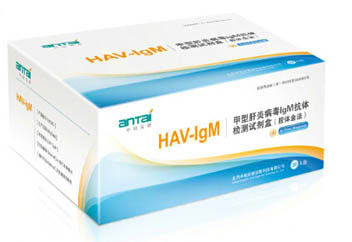 甲型肝炎病毒IgM抗体检测试剂盒(胶体金法) Rapid?Gold?Immuno-assay?Test?for?HAV-IgM 20人份/盒 本试剂盒预用于定性检测待测血清或血浆样品中可能存在的甲型肝炎病毒IgM抗体。在临床诊断中作为甲型肝炎病毒感染的辅助诊断试剂。 检测方法: 1、从铝箔袋中取出检测卡; 2、放在水平工作台面上平置并做好样本标记; 3、用加样器取10μl血清、血浆或20μl全血样品,直接加入到加样孔中。再加入100μl (2-3滴)样本稀释液; 4、15-20分钟内判读结果,20分钟后检验结果无效。 产品操作说明:甲型肝炎病毒IgM抗体检测试剂盒(胶体金法)国食药监械(准)字2013第3400614号甲型病毒性肝炎简称甲型肝炎,是由甲型肝炎病毒(HAV)引起的一种肠道传染病。呈全世界范围的分布,我国为高发区,其发病为各型肝炎的首位。甲肝急性发病有发烧、怕冷、食欲下降、无力、肝肿大及肝功能异常。本试剂盒预用于定性检测待测全血、血清或血浆样品中可能存在的甲型肝炎病毒IgM抗体。在临床诊断中作为甲型肝炎病毒感染的辅助诊断试剂。 更多 甲型肝炎病毒IgM抗体检测试剂盒(胶体金法) 价格、说明、厂家,请关注医贸天下医疗器械网