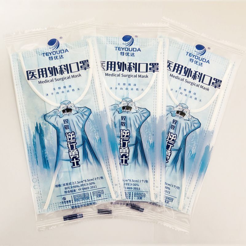 产品名称:外科用医用口罩 蓝膜独立装/无菌