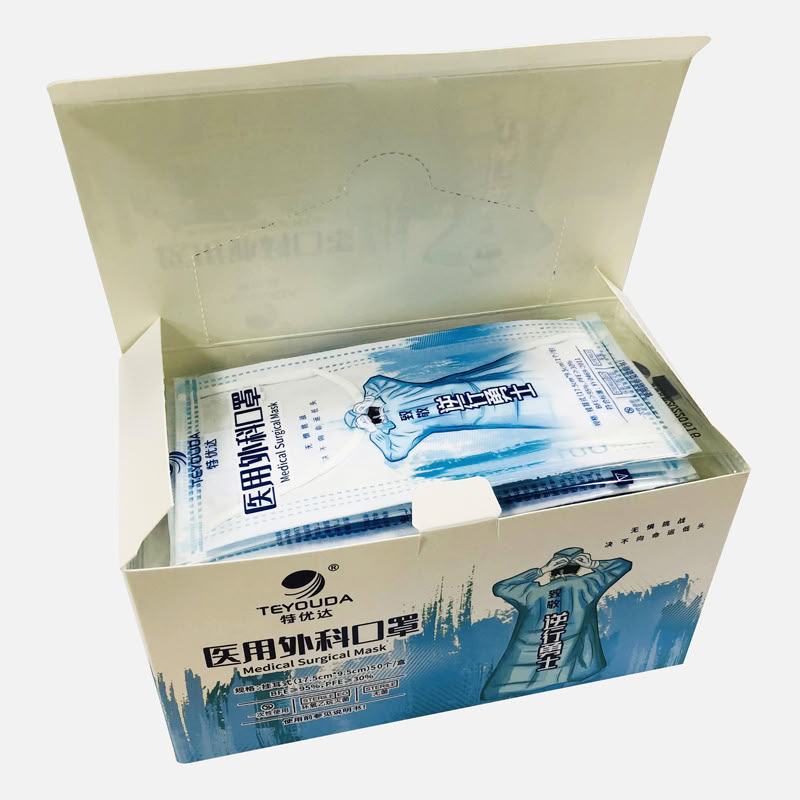 产品名称:特优达外科用一次性医用口罩 独立装无菌50个/盒