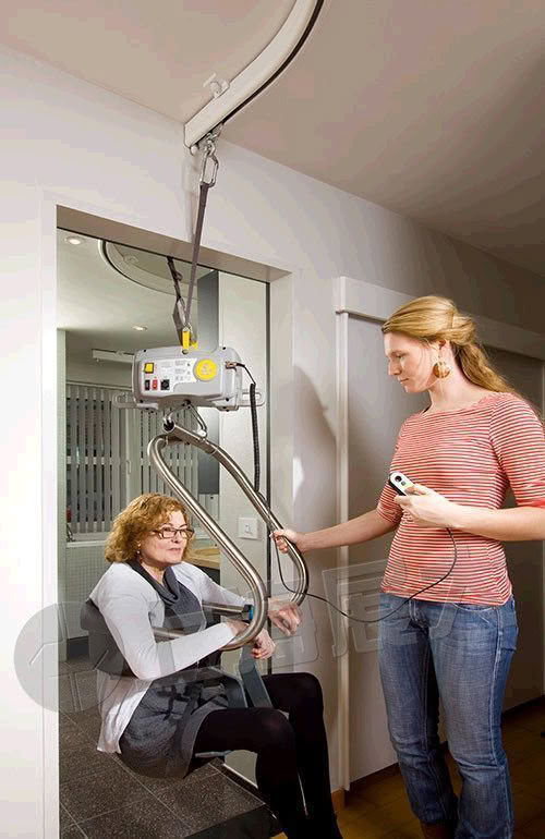 通过使用屋顶轨道、固定件和抱手以、更舒适、更照顾患者尊严的方式转运患者,减轻护理工作强度;应用于重症监护室、水疗室、治疗室、病房护理、残疾人住所等。此外还可由使用人独立操作使用,在家里使用红外操作手柄实现自由移位。