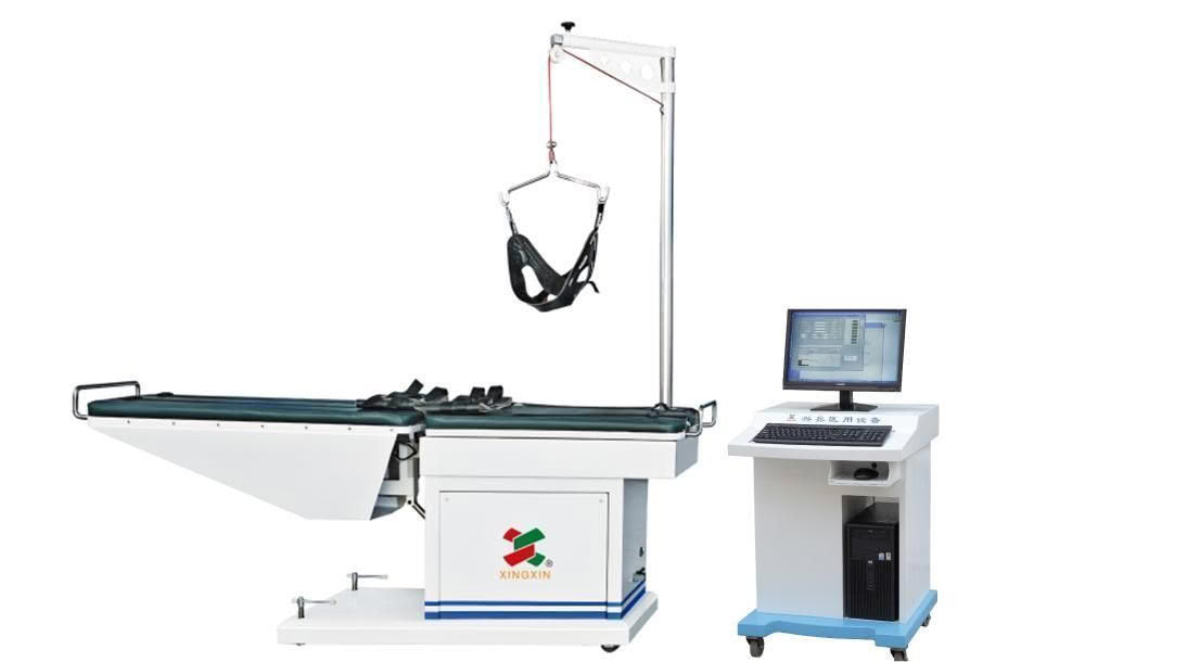 YHZ-200型电脑三维多功能腰椎慢速牵引床,具有上下成角牵引、左右摇摆牵引、纵向牵引功能,各项治疗参数、动作均可通过计算机自动控制,具有中英文下拉式管理 菜单。