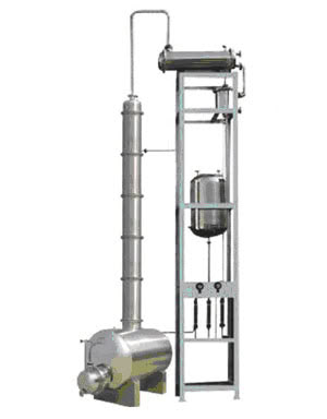?? 本装置采用高效不锈钢波纹填料,全不锈钢制作,以确保成品酒精不被污染,塔釜采用可拆式U型管,这样,便于加热外壁及蒸馏釜内壁进行清洗。