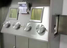 核医学钼锝防护分装橱 参数及功能: 六面全封闭防护,通过操作伸手孔,有效降低分装操作过程中工作人员的辐射剂量。 前面设有与箱体防护能力一致的高铅玻璃观察窗。 正面设有四个操作伸手孔,并配有防护盖。 橱体两侧留有物品传递通道,并设置带有不锈钢压紧把手的防护门。 垂直层流设计/0.35-0.5m/s风速可调。 配置HEPA有效过滤器(大于99.999%)操作区域的洁净达到100级。 更多 分装柜 价格、说明、厂家,请关注医贸天下医疗器械网