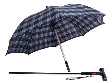 产品拆分开可同时具有拐杖和晴雨伞的功能,一体式折叠起来亦方便携带。