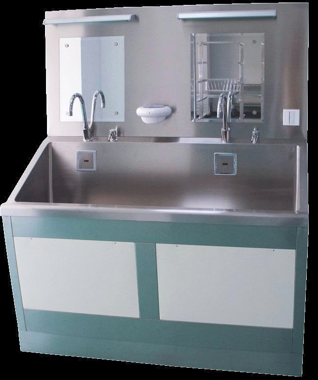 搜索关键词:洗手槽,洗手池,医用感应洗手槽,脚踏式洗手槽,刷手槽,刷手池,手术室感应洗手池适用于缓冲间,预进间,手术室及走廊过道洗手之用。规格:(双位)1500×600×850~1120/1870 (三位)2000×600×850~1120/1870(四位)2250×600×850~1120/1870 备注:洗手槽采用SUS304不锈钢双层制作,中间特殊 静音处理。槽身以人体工程学设计,洗手时水花不会 溅在身上。鹅颈型水龙头,光控感应式出水,安全可 靠。加热方式 :电加热;给皂装置:气泵给皂;给 药装置:红外给药;槽身长度:2位为1500mm,3位 为2200mm宽敞舒适,同时使用轻松自如。标配:感应出水,感应出消毒液,手动出皂液可选配:电加热器或恒温出水器、豪华灯镜装饰罩。手动出刷器,脚踏出刷器,感应出刷器,出水方式可选择:感应出水,脚踏出水,膝盖出水 用途:术前洗手。 更多 感应洗手槽,手术室感应洗手池 价格、说明、厂家,请关注医贸天下医疗器械网