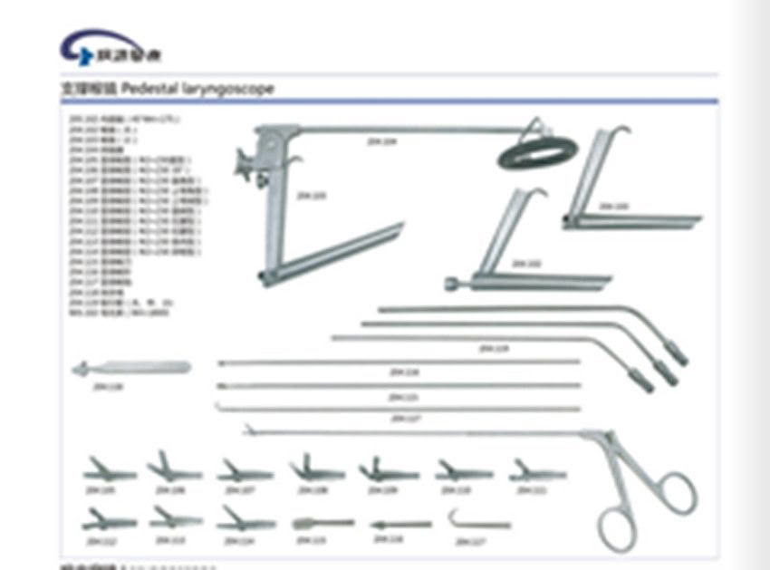 产品名称:支撑喉镜成套手术器械