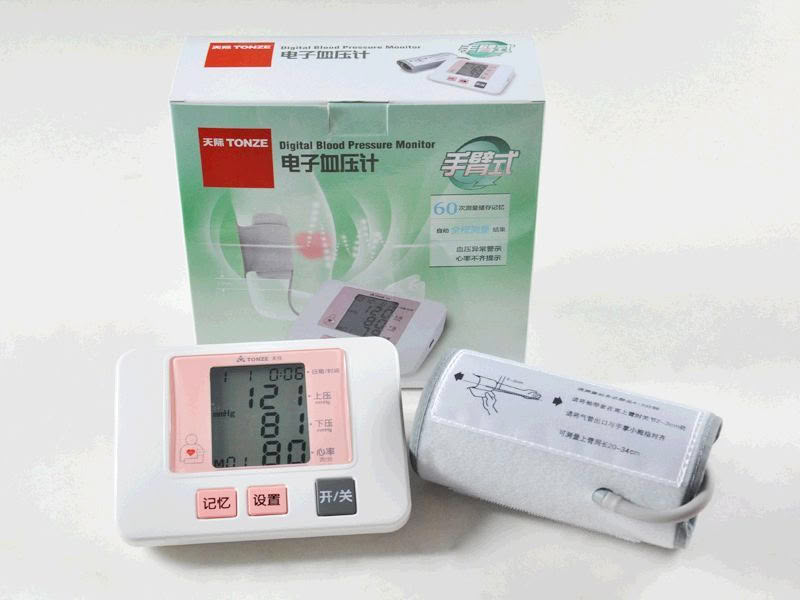 采用微电脑IC技术,溶入人性化设计理念,结合人体手臂构造,设计出简易方便单手可缠绑的弧形袖带;大屏幕背光液晶显示,清晰易读,操作简易。美观大方,全自动快速准确测量,使用方便,测量结果同时显示血压值,脉搏数,并提供血压、心率异常警示,日期/时间显示功能,可随同记忆储存功能将测量结果与时间储存调出供使用者参考及对比用,使用电源双选择,干电池或外接稳压电源。
