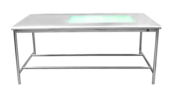 包布检查打包台 型号:YC-BJT2010 规格:2000*1200*800 技术说明: 1.型号YC-BJT2010 ;尺寸2000*1200*800。 2.台面选用HL304哑光拉丝板,板材实际厚度1.0mm,台面前后大圆弧过度,厚度50mm,内置15mm厚高强度中密板,采用强力胶粘贴,永不开胶。台面与密度板之间为封闭式结构。承载力强。 3.四角立柱为国标不锈钢38*38*1.2方管,四周拉筋为国标不锈钢25*38*1.2方管。 4.台面发光板为10mm磨砂玻璃,承载力为150公斤。 5.发光板下面配置4只LED高清无屏闪灯。 6.台面前后配置双联双控开关,可以两面随意控制灯光。 7.底部为四只不锈钢高度可调,调节脚。 ?产品使用说明: 1.使用时请尽量不要与有腐蚀性液体接触。如84消毒液等,因腐蚀性液体对一切金属都有腐蚀作用,也包括医用级304材质。如果长时间与腐蚀性液体接触会造成产品生锈等情形。 2.每次使用后请清洗污渍后用防锈剂保护保养,可有效延长产品的使用寿命。 3.为保证产品正常使用,产品使用一段时间后,请对产品全面表面清理保养一次。 4.如带脚轮,静止状态时务必开启刹车功能,防止移动。 5.三节轨道定期加润滑油,保持抽拉通畅。 6.发光板可以承重,不可以敲打。 更多 包布检查打包台 价格、说明、厂家,请关注医贸天下医疗器械网