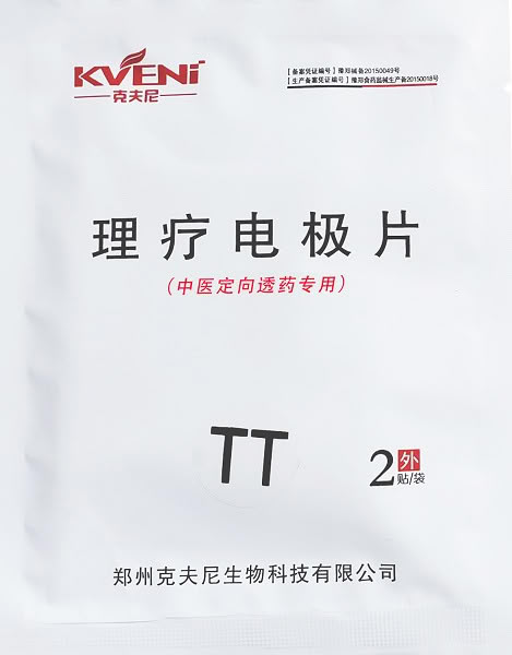 【产品名称】 TT理疗电极片,克夫尼透药疼痛电极片。 【材料及组成】有导电材料组成,用于传递磁电脉冲电信号使用 【适用范围】用于各种急性和慢性疼痛的理疗;可用于改善患者因外伤或手术所致的疼痛,如手术后痛;也可用于术后镇痛。【产品特点】本品为生物电刺激仪,电极是医用材料制成的一次性使用器件,在临床上已被广泛应用,它可以模拟人体皮肤的电脉冲刺激皮肤组织和神经,促进受损组织再生修复的功能和作用。 本品为导电胶(聚四氟乙烯)系列产品之一,根据国际通用标准,选用聚四氟乙烯材料制成的导电凝胶电极贴敷于人体体表穴位或受损神经上进行治疗。 一、性能指标 [表格] 适用范围|可用于局部穴位贴敷,也可用于治疗关节、肌肉、软组织等部位的急性疼痛。 [结束上表] 二、产品适用范围 本品适用于各种急性和慢性疼痛的理疗,改善患者因外伤或手术所致的疼痛,如手术后痛、术后镇痛。 三、注册要求 产品注册前应取得下列材料: 1.经国家食品药品监督管理局组织审查的拟上市产品的注册文件; 2.拟上市产品的技术要求; 3.预期用途的说明书或标签; 4.产品标准。 四、生产企业名称或地址 郑州克夫尼生物科技有限公司 五、有效期 1.产品有效期为三年; 2.包装盒内每片电极可单独使用,时间不超过一个月。 3.未用完产品应密封保存在阴凉干燥处。 4.不得与其他物质混合存放在一起进行运输、储存。 5.超过有效期,请及时向我公司申请更换。 更多 克夫尼透药疼痛电极片 TT理疗电极片 价格、说明、厂家,请关注医贸天下医疗器械网
