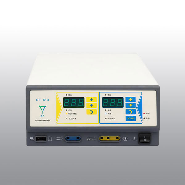 射频手术设备RF-120: 工作原理: 切割原理:电工作端输出4.0MHz射频电磁波,细胞内的性水分子在局部高频电磁场的作用下,快速振荡、撞击、膨胀,使细胞壁破裂,从而实现了切割凝血原理:细胞内的水分子在高速运动过程中摩擦生热,将电能转化为热能,使血浆中的可溶性蛋白原变成不可溶的蛋白单体,凝血酶使蛋白单体变成蛋白多聚体,蛋白多聚体彼此交织成网,将血细胞网络在内形成血凝块,完成凝血过程---简言之,就是蛋白质变性的过程消融原理:电工作端输出1.71MHz的射频电磁波,使局部组织内水分子剧烈震荡,大分子化学键断裂,从而达到消融目的。 射频高频手术设备与普通高频手术设备区别主要是频率和波形不同,继而决定了工作原理和效果的不同。我公司自主研发生产的频率是1.71MHz和4.0MHz,普通高频手术设备的工作频率则为450KHz—650KHz。二者的工作原理不同。在同一电路中,通过某段导体的电流跟这段导体两端的电压成正比,跟这段导体的电阻成反比,这就是欧姆定律。电流通过人体组织时,组织因本身的阻抗会产生热量。电流不变时,阻抗越大,热量越大。普通高频手术设备工作时,电流通过电,电与人体接触处的面积越小,阻抗就越大,接触位置热量就越大,细胞受热破裂、凝血(类似于气球被烫破),以此达到切割或止血的目的。 射频高频手术设备,其工作原理是电工作端输出1.71MHz/4.0 MHz射频电磁波(而非电流),细胞的性水分子在这个局部高频电磁场的作用下,振荡、撞击、膨胀,大分子化学键断裂,从而实现切割、消融功能;于此同时,水分子在高速运动过程中摩擦生热,产生蛋白质变性,完成凝血过程。第三,工作原理的不同继而决定了操作方式的不同及效果的不同。普通高频手术设备工作时必须有负板(电流流经人体,再从负板流回主机从而构成回路),且面积足够大,与人体接触良好,否则温度高造成组织碳化或蛋白质变性,发生烫伤;切割时,需要施以一定的机械力,容易造成创面比较大,伤口愈合时间长。主要应用在大手术中。射频高频手术设备没有电流,不需要负板,只需要中性板与电之间形成电磁波,不需要与人体直接接触,可以隔着布单或衣服放置,也可远离手术区域。40℃-70℃低温切割,对人体组织侧面热损伤更小、创面小,愈合快。主要应用在微创精细手术中。 技术参数单/双工作模式,单的工作频率为4.0MHz,双工作频率为1.71MHz。输出功率:单大100W;双大75W单模式下时,开机不插中性板,机器会报警。切割、消融、凝血全功能 临床应用:适用于皮肤科、整形美容科、眼科、耳鼻喉科等科室。 更多 双极高频电刀/双极射频电刀/高频电刀/射频电波刀/射频手术设备/微创手术设备 价格、说明、厂家,请关注医贸天下医疗器械网