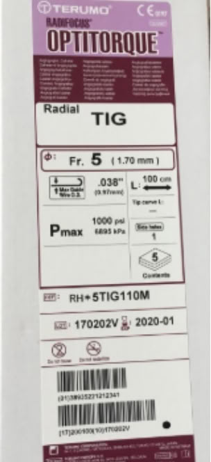 产品名称:泰尔茂terumo 血管内造影导管 共用管 RH*5TIG110M