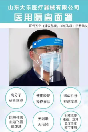 产品名称:隔离面罩/医用隔离面罩