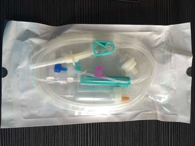 本产品是在十万级净化车间内生产,由软管、滴斗、空气过滤器、精密药液过滤器、流量调节器、静脉输液针、瓶塞穿刺器组成,产品质量符合YZB/国0431-2010一次性使用精密过滤输液器(带针)的全部要求,出厂前经环氧乙烷气体灭菌,无菌、无热原,本产品主要用于重力输液用。