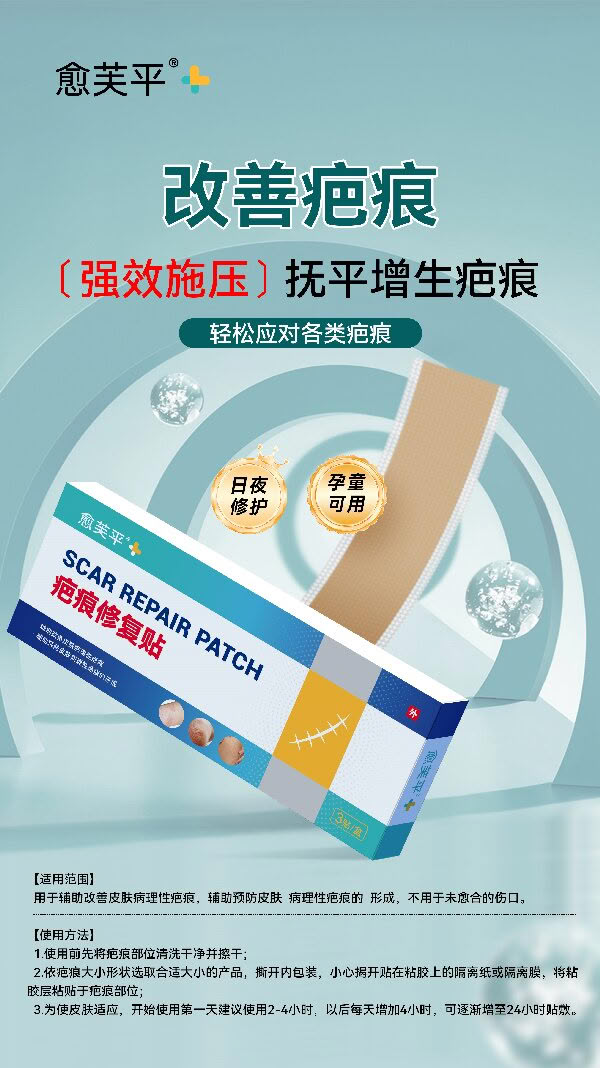 [产品名称]疤痕修复贴 【型号、规格]I型(方形):4cmx15cm [结构及组成]本品是由背衬层、凝胶层、离型层组成。背衬层是由聚氨酯薄膜制成,凝胶层是由二甲硅油制成,离型层是由聚丙烯薄膜制成。 [产品性能]外观:凝胶应涂布均匀,凝胶面应光洁,色泽一致,无脱落、失黏现象;背衬 面应平整、洁净、无漏凝胶现象。pH值:应为5.0~7.0。其他内容详见产品技术要求。 [适用范围]用于辅助改善皮肤病理性疤痕,辅助预防皮肤病理性疤痕的形成,不用于未愈合的伤口。 【使用方法]1.使用前先将疤痕部位清洗干净并擦干; 2.依疤痕大小形状选取合适大小的产品,撕开内包装,小心揭开贴在粘胶上的隔离纸或隔离膜,将粘胶层粘贴于疤痕部位; 3.为使皮肤适应,开始使用第一天建议使用2-4小时,以后每天增加4小时,可逐渐增至24小时贴敷。 [禁忌症]对本品过敏者禁用。 [注意事项]1.对本品成份过敏者慎用; 2.如出现不适,请停止使用或遵医嘱。 [特殊储存、运输条件、方法]密闭、常温贮存:常温运输。 更多 疤痕贴 医用硅酮疤痕贴 进口硅酮 疤痕修复贴 价格、说明、厂家,请关注医贸天下医疗器械网