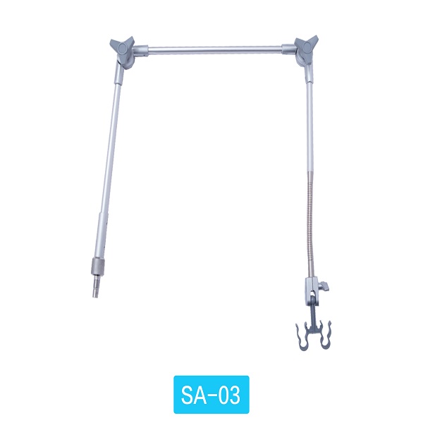 机械臂型号:SA-03 机械臂重量:1.5KG 机械臂材质:6063铝 关节数量:3节 挂钩材质:尼龙 安装方式:可定制 关节结构:铝合金关节 直径: Φ14 长度:可定制 调节角度:0°-210° 颜色:镀镍 包装尺寸:530*95*80mm 更多 机械臂,呼吸机支臂,导联线支架 价格、说明、厂家,请关注医贸天下医疗器械网