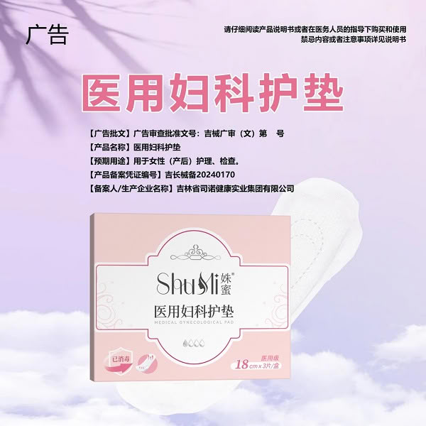 [产品名称]医用妇科护垫 [结构及组成]本品由背衬层(无纺布)、吸液层(吸水纸)、防粘层(离型纸与无尘纸)组成 [产品性能]产品应整齐,无污染,无异物; [预期用途]用于女性(产后)护理、检查。 [使用方法]打开包装,取出产品,贴于需处即可。 [禁忌症]无。 [注意事项)1)包装破损、禁止使用。 2)本品为一次性使用,请勿重复使用。 [特殊储存/运输条件/方法]密封,置常温干燥处。 [使用期限]三年 更多 医用妇科护垫 医用卫生巾 械字号卫生巾 医用护垫 价格、说明、厂家,请关注医贸天下医疗器械网