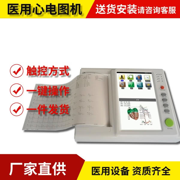 产品性能特点: 1、12导联同步心电采集; 2、112mm六道心电记录纸; *3、5.7寸640*480分辨率彩色TFT显示屏,全触摸操作,12导同屏显示; *4、支持中文英输入,拼音和五笔输入法可选; 5、3通道/(3+1)通道/(3+2)通道/6通道 /(6+1)通道五种心电记录组合模式; 6、3通道/(3+1)通道/(3+2)通道/单列6通道/双列6通道/12通道六种心电显示组合模式; 7、心电图自动诊断功能,自动进行心电图的测量和分析; 8、可输入病人的ID号、姓名、性别、年龄、身高、体重、血压; *9、内置大容量SD卡,可存储2000例病人数据,SD卡容量可自由扩展; 10、心电图仪历史数据回放,打印; 更多 医用心电图机 数字心电图机 厂家直发 价谈 价格、说明、厂家,请关注医贸天下医疗器械网